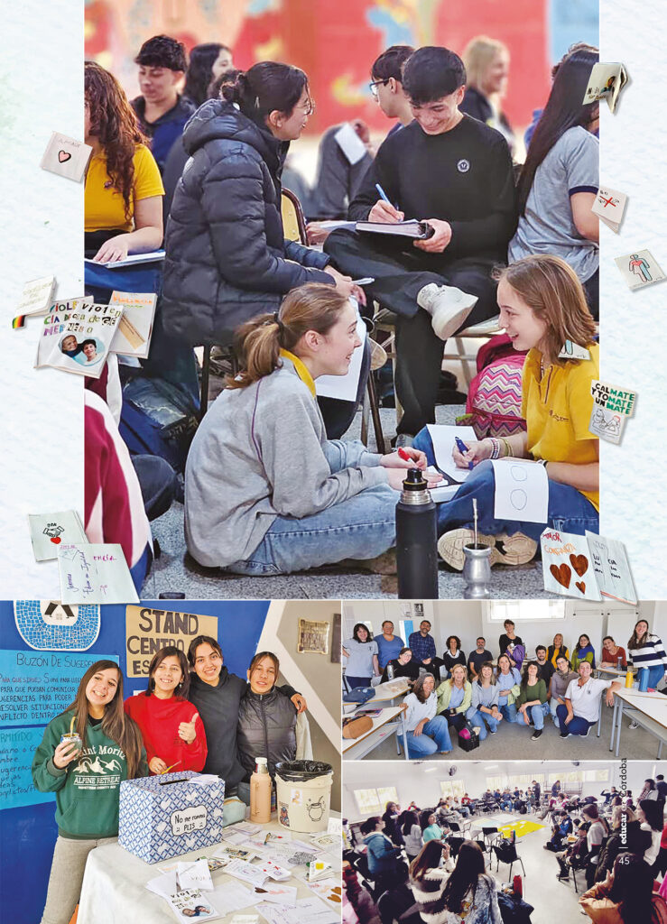 En paralelo, a mediados de 2024, mientras se desarrollaba el trabajo entre preceptoras, docentes y Consulta Pedagógica, por iniciativa combinada entre la dirección y el Centro de Estudiantes, desde el IPET 98 Luis de Tejeda realizaron el primer Encuentro de Jóvenes de Centros de Estudiantes. Participaron todas las escuelas de Río Tercero: las de gestión pública y privada, un CENMA y una escuela especial. La propuesta era compartir miradas, preocupaciones e intereses. “Para nuestros estudiantes fue muy importante”, explica Alejandra, y amplía: “Primero, porque siendo anfitriones, eso los ponía en un lugar de protagonismo que nunca tuvieron en ningún ámbito; y segundo, porque descubrieron que tenían muchas cosas en común con otras chicas y otros chicos de la ciudad”.
