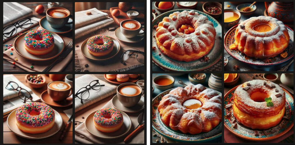 A continuación, compartimos dos tablas de imágenes generadas utilizando IA a través de las herramientas Copilot y Dall-E 3. La primera tabla es clara de identificar: le pedimos al modelo que genere una imagen de una dona (rosquilla). De cierta forma, podemos ver que el modelo generó correctamente la imagen. En el otro caso, ¿qué se imaginan que le pedimos al modelo que genere? ¿Un flan? ¿Un bizcochuelo? ¿Una rosca de pascua? No, nada de eso. Le pedimos que genere una torta frita. ¿Les parece que las imágenes son similares a una torta frita? ¿Por qué pudo generar la dona de forma perfecta y generó imágenes que poco tienen que ver con una torta frita? Los datos que usaron para entrenar estos modelos dejan en claro el motivo. Seguramente, el conjunto de datos contaba con muchísimas imágenes de donas para generar. Pero no sucede lo mismo con las tortas fritas. A pesar de ser algo muy tradicional de nuestra cultura, no forma parte de los conjuntos de datos de entrenamiento de los modelos y, por lo tanto, claramente afecta la diversidad cultural.